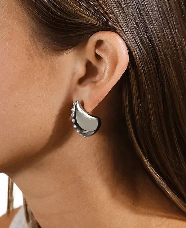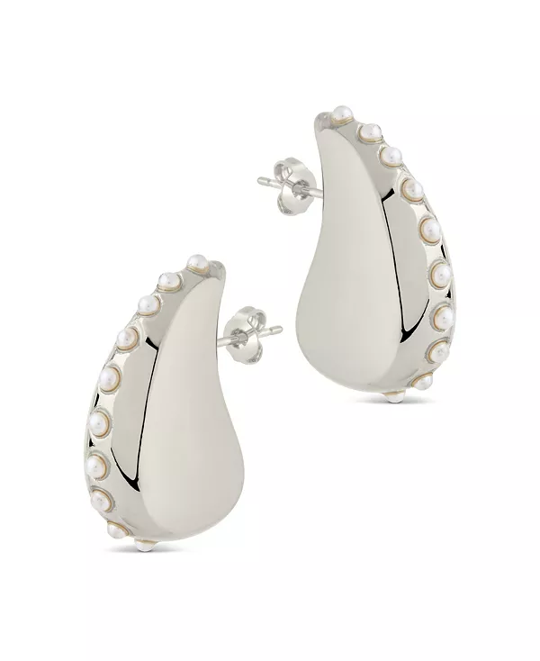Эти полированные серьги украшены потрясающими перламутровыми заклепками в изящной каплевидной форме.