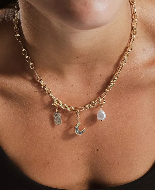 Звенья из смешанных металлов создают уникальную текстуру, а удлиненная длина добавляет нотку элегантности. Добавьте подвески для создания нового образа.