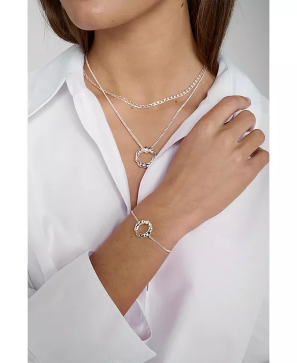 Основные характеристики товара Браслет с подвеской в виде витого кольца. Размеры Длина: 19,7 см. Кулон: 2,2 см.