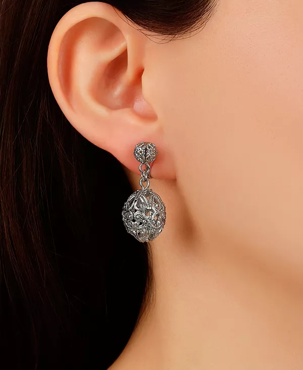 Эти серьги-клипсы с овальной ажурной бусиной легко крепятся к круглому ажурному шарику, создавая гармоничную подвеску, которая добавит изысканности любому наряду. Специально разработанная для непроколотых ушей, надёжная клипса обеспечивает комфорт без ущерба для стиля.