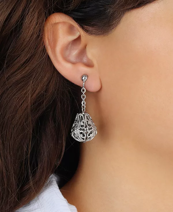 Украсьте свои уши элегантностью и изяществом с помощью этих очаровательных серег-клипс. Изящные филигранные капли в форме колокольчика изящно свисают с замысловатых цепочек, создавая изящное, но притягивающее взгляд движение.