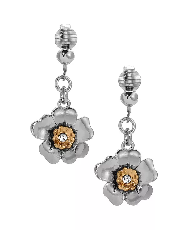 Эти очаровательные серьги-подвески выполнены в двухцветном дизайне и излучают утонченное и нежное очарование, которое непременно станет вашим любимым. Прозрачные стеклянные сверкающие кристаллы украшают центр цветочных капель, изящно свисающих с надежных застежек-клипс.