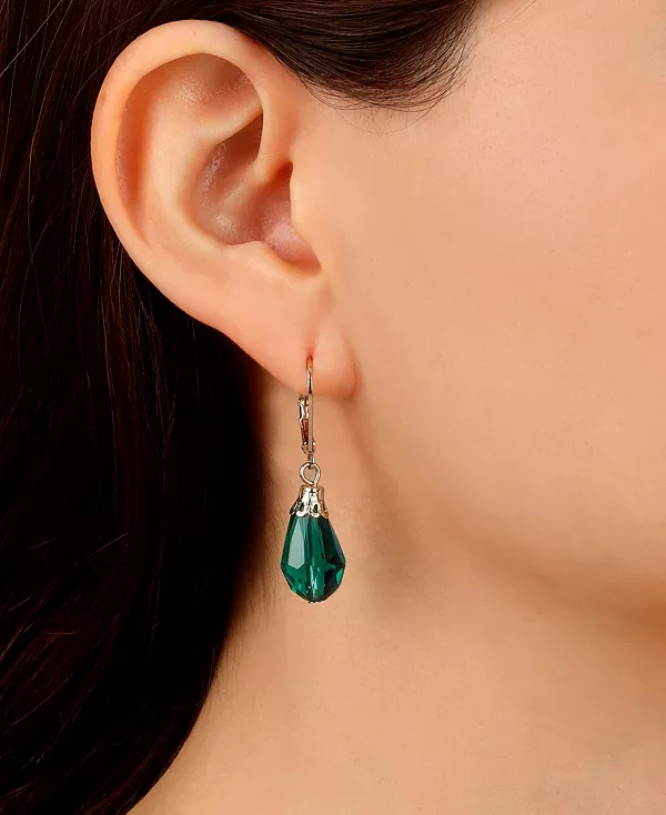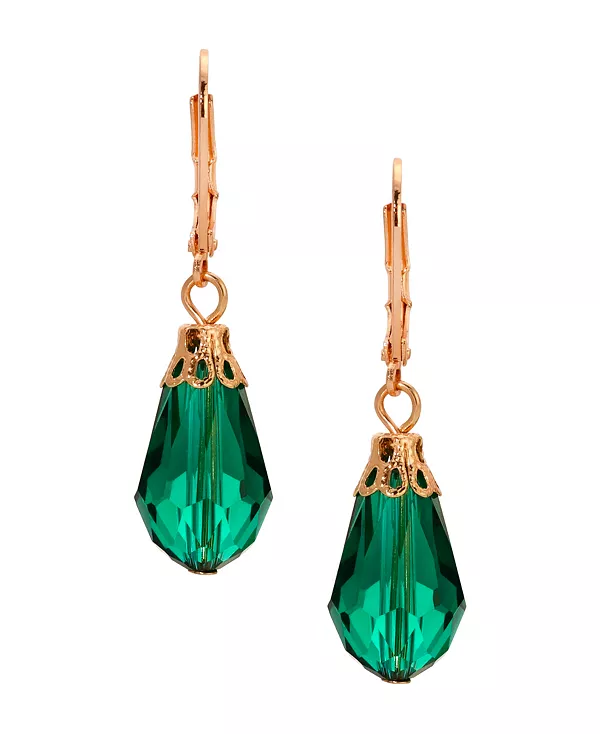 Серьги-Подвески с ограненными кристаллами золотистого оттенка 2028, green