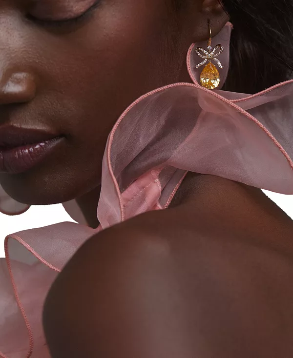 Эти элегантные серьги-подвески Eliot Danori украшены очаровательным бантом из кубических цирконий, которые красиво мерцают при каждом повороте. Изящная желтая капля грушевидной формы добавляет изящности.