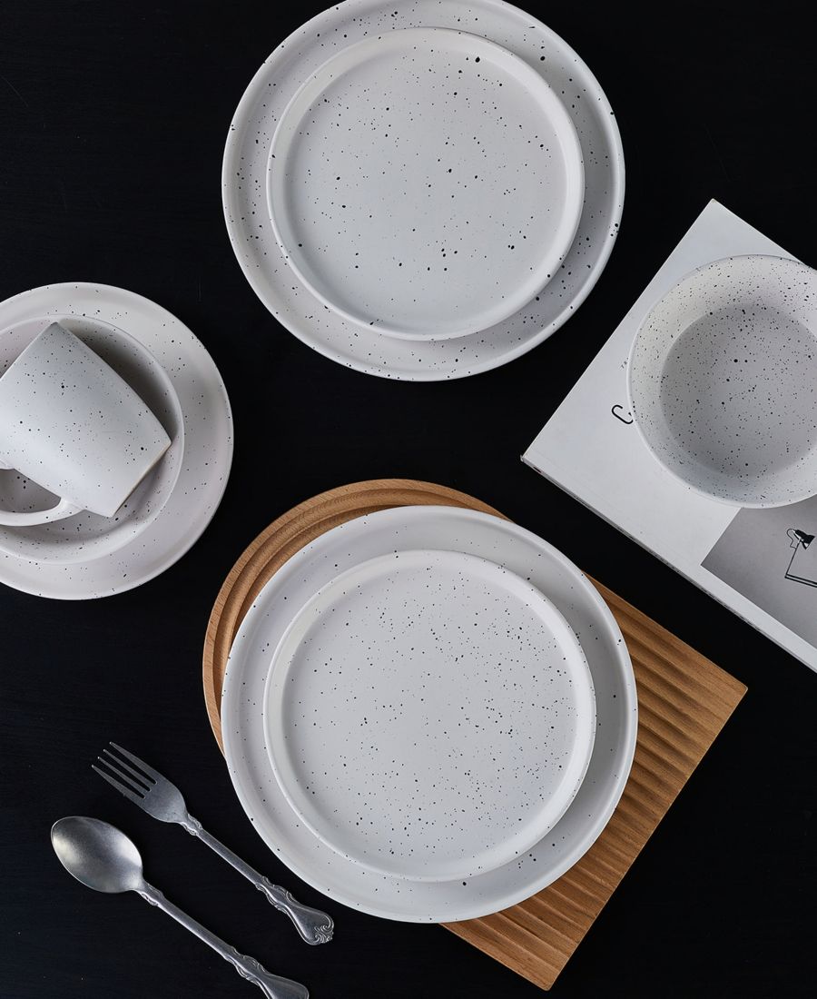 Крапчатый дизайн: Нефритовый цвет отличается вневременным крапчатым дизайном на белом, бежевом или светло-сером фоне, что делает этот набор посуды интересным дополнением к любой сервировке.