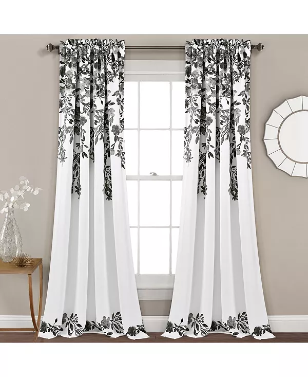Обновите интерьер вашего дома с помощью этого прекрасного комплекта штор для окон. Цветочный рисунок в виде лозы на светонепроницаемой ткани создает впечатление, будто она спускается сверху вниз к центру. Комплект продается парами.