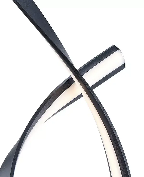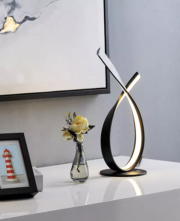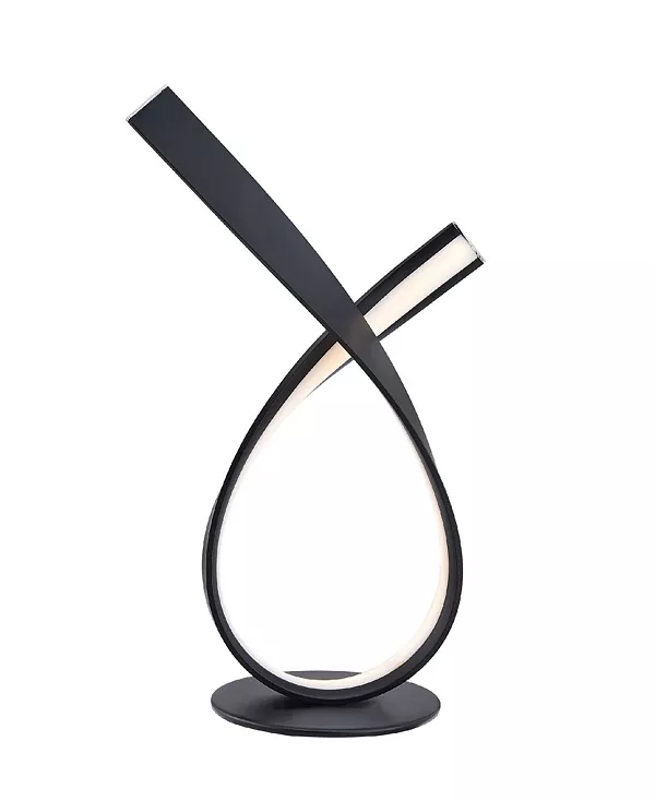 Светодиодная настольная лампа Royce с ленточным акцентом и встроенным выключателем на шнуре — эффектный предмет интерьера, который можно использовать где угодно.