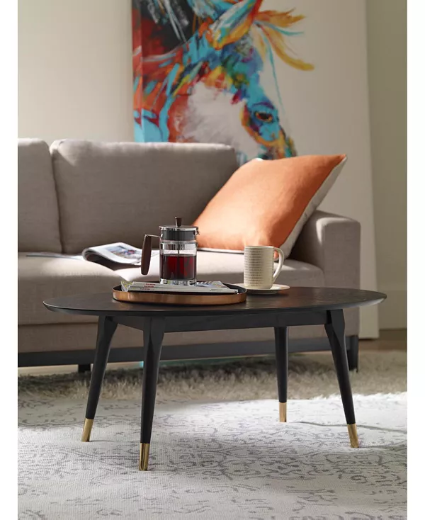 Журнальный столик Clemintine от бренда Elle Decor, который является настоящим хитом в мире моды, привнесет изысканный стиль и функциональность в вашу гостиную. Этот овальный журнальный столик с коническими ножками из массива дерева и латунными наконечниками, вдохновлённый мебелью 50-х и 60-х годов, — воплощение мечты ценителей винтажного стиля. Прочная столешница с натуральной текстурой дерева чёрного цвета идеально подойдёт для утреннего латте, пока вы листаете свежий журнал Elle Decor. Украсьте свою гостиную любимыми цветами или коллекционными предметами, чтобы создать красивый и индивидуальный акцент в вашем жилом пространстве.