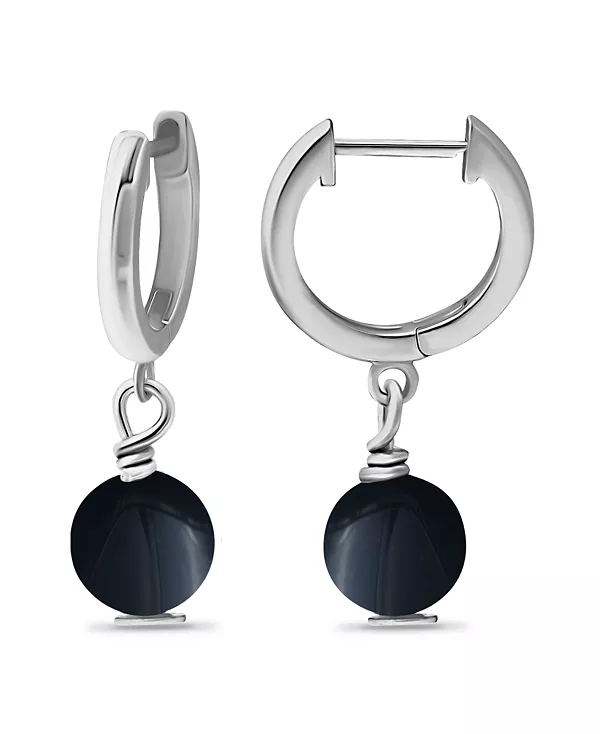 Посеребренные серьги-кольца Huggie Hoops с натуральными камнями Macy'S, onyx