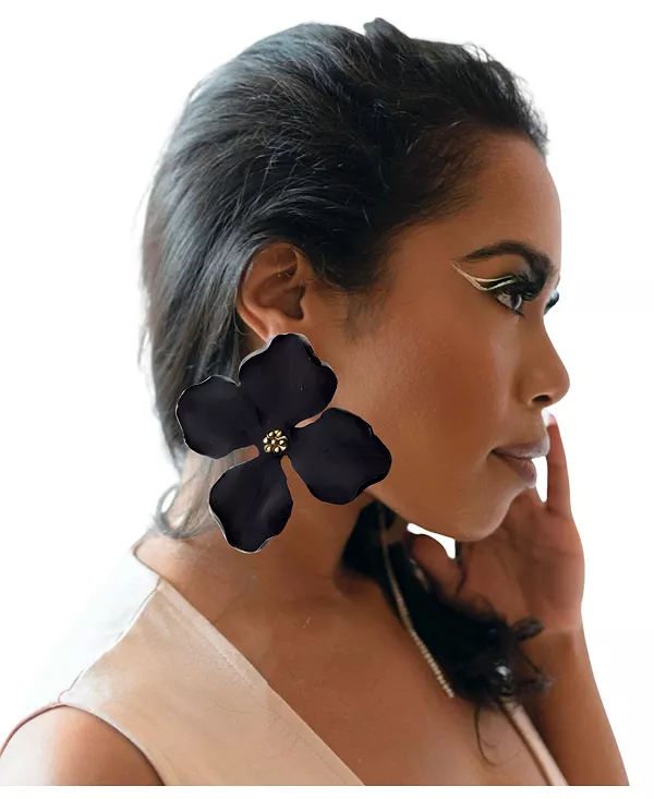 Крупные цветочные серьги Swanky Designs, black