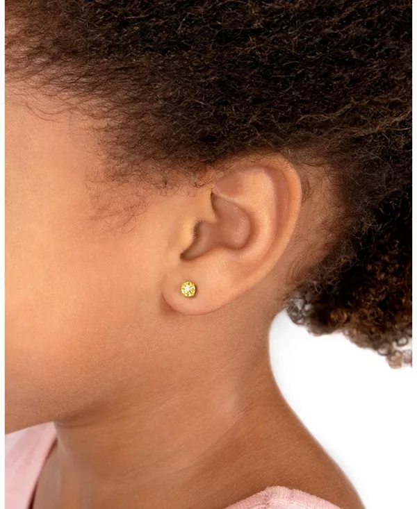 Детские серьги-гвоздики с завинчивающейся застежкой из 14-каратного золота с кристаллами и камнями-победителями диаметром 4 мм для девочек Tiny Blessings, november