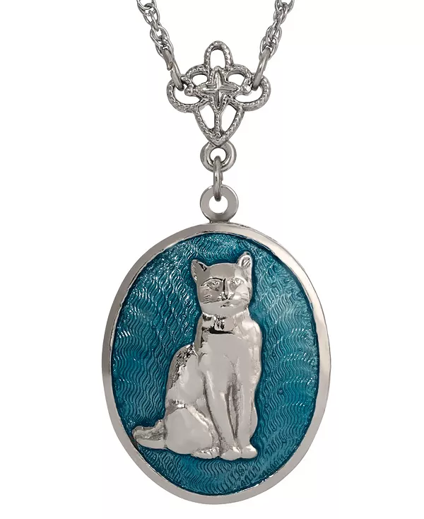 Ожерелье с эмалевым медальоном в виде овального кота 2028, blue 9 743₽