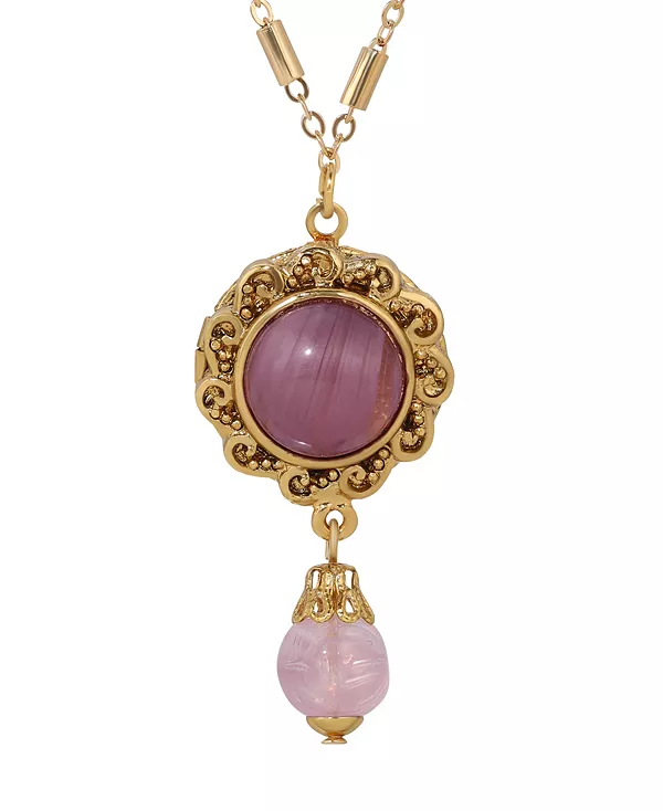 Ожерелье с круглым стеклянным камнем 2028, purple
