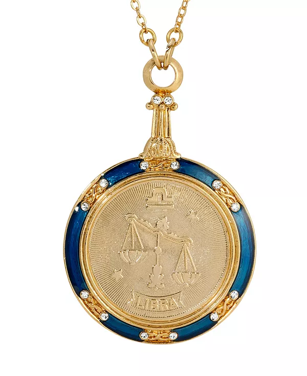 Круглое зодиакальное ожерелье с синими эмалевыми кристаллами 2028, libra