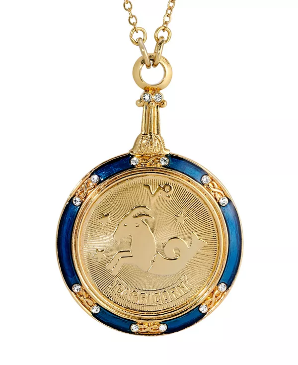 Круглое зодиакальное ожерелье с синими эмалевыми кристаллами 2028, capricorn