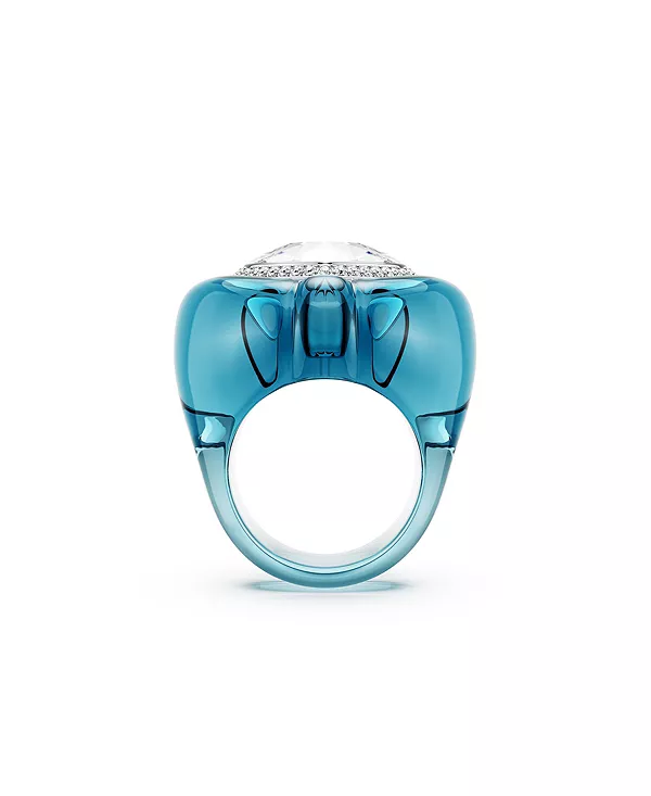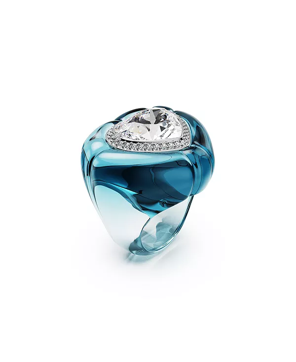 Это коктейльное кольцо, вдохновленное жизнерадостностью поп-арта, станет отличным способом разнообразить свой образ. Синее кольцо в форме сердца дополнено прозрачным кристаллом в форме сердца, окруженным прозрачным паве в родиевой оправе. Носите его в любое время для яркого блеска или проявите свою креативность, сочетая с другими коктейльными кольцами из коллекции Dulcis.