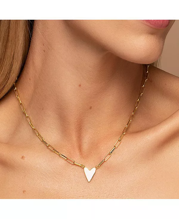 Ожерелье в форме сердца с эмалевым покрытием 14 карат Uncommon James, white