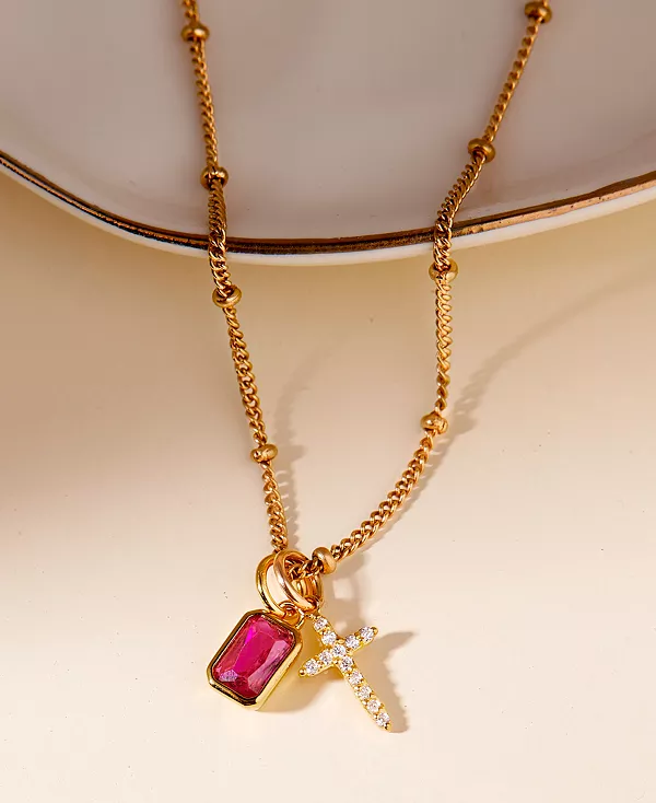 Ожерелье с крестом Жозефины из 14-каратного золота с камнем рождения украшено двумя очаровательными подвесками: прямоугольным камнем рождения и крестом с паве. Персонализируйте. Этот кулон с вашим личным камнем рождения или с камнем рождения другого человека станет продуманным и индивидуальным подарком.