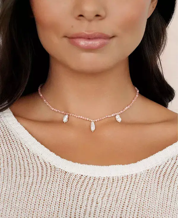 Чокер «Ибица» с бусинами из искусственного камня сверкает тремя яркими оттенками, каждый из которых украшен тремя подвесками из настоящего пресноводного перламутра. Сочетание богемного стиля и прибрежной элегантности добавит игривый и изысканный штрих любому образу.