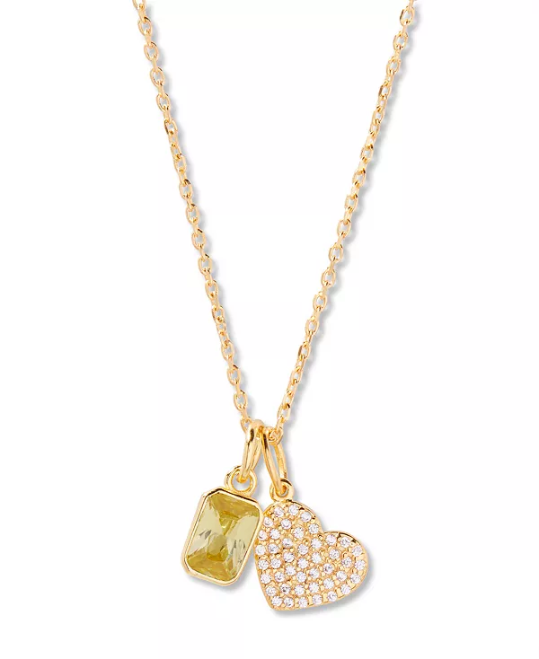 Ожерелье «Аделина» с камнем рождения, выполненное из 14-каратного золота с позолотой, украшено двумя очаровательными подвесками: прямоугольным камнем рождения и блестящим сердцем с паве. Персонализируйте. Этот кулон с вашим личным камнем рождения или с камнем рождения другого человека станет продуманным и индивидуальным подарком.