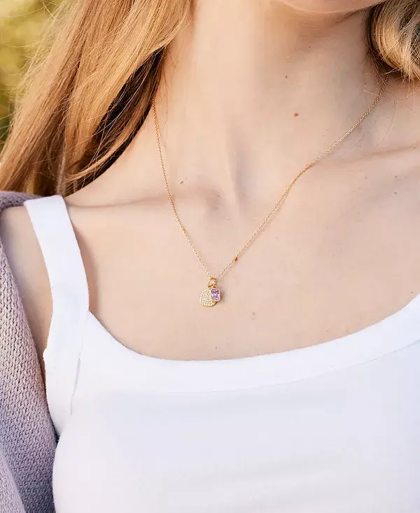 Ожерелье «Аделина» с камнем рождения, выполненное из 14-каратного золота с позолотой, украшено двумя очаровательными подвесками: прямоугольным камнем рождения и блестящим сердцем с паве. Персонализируйте. Этот кулон с вашим личным камнем рождения или с камнем рождения другого человека станет продуманным и индивидуальным подарком.