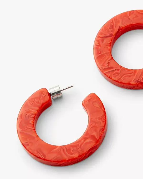 Наши фирменные открытые серьги-кольца, изготовленные вручную из легкого итальянского ацетата с бочкообразными основаниями.