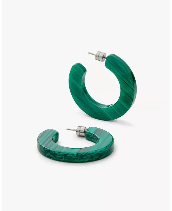 Наши фирменные открытые серьги-кольца, изготовленные вручную из легкого итальянского ацетата с бочкообразными основаниями.