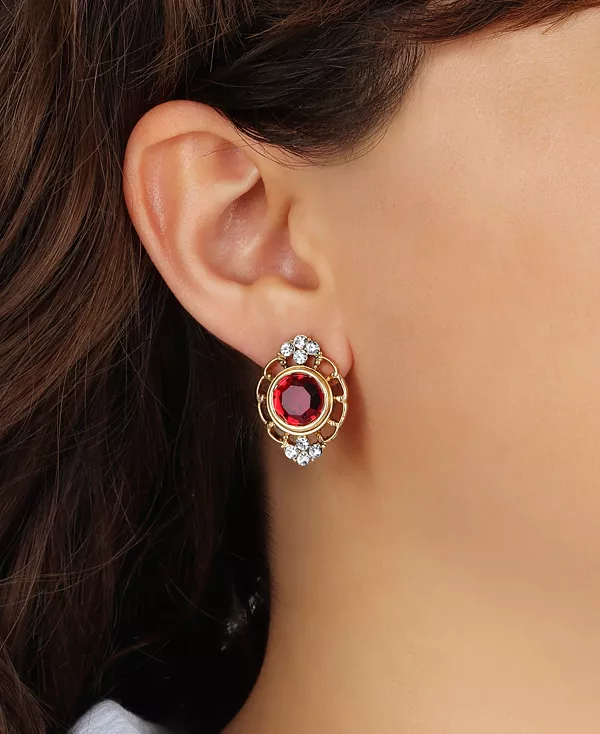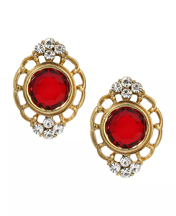 Серьги-Пуговицы с филигранными кристаллами 2028, red