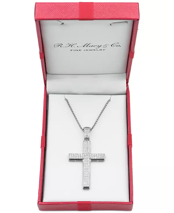Мужское ожерелье с бриллиантовым крестом, 22 дюйма (1 карат) Macy'S, silver 116 170₽