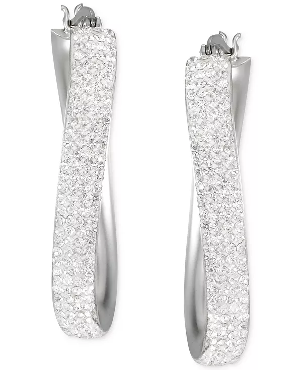 Волнистые овальные серьги-кольца с кристальным паве Macy'S, silver