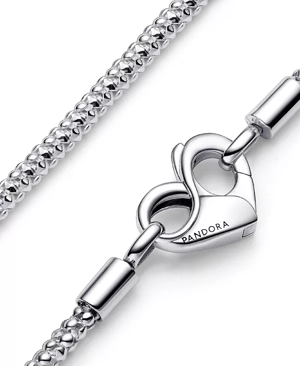Обновите свою коллекцию украшений с помощью колье-цепочки с заклепками Pandora Moments из нашего уникального сплава металлов, покрытого розовым золотом 14 карат. Это ожерелье ручной работы отличается гибкой текстурированной цепочкой и застёжкой в форме сердца с детальным дизайном в виде знака бесконечности внутри. Это ожерелье-цепочка с заклепками можно сочетать с подвеской Pandora Moments O или подвеской-шармом в форме сердца любого размера. Обратите внимание, что застёжка несовместима с шармами.