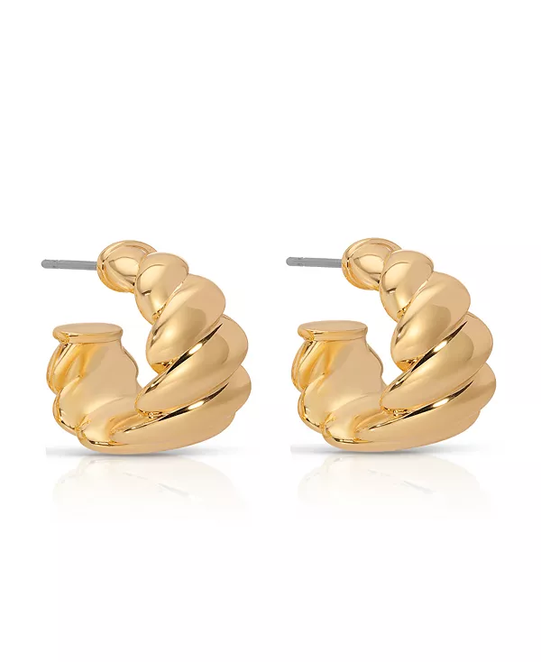 Современный взгляд на классику — серьги-кольца Twist of Fate Hoops с изящным, витым металлическим дизайном и изящным повседневным размером. Непринужденный шик с утончённой изюминкой.