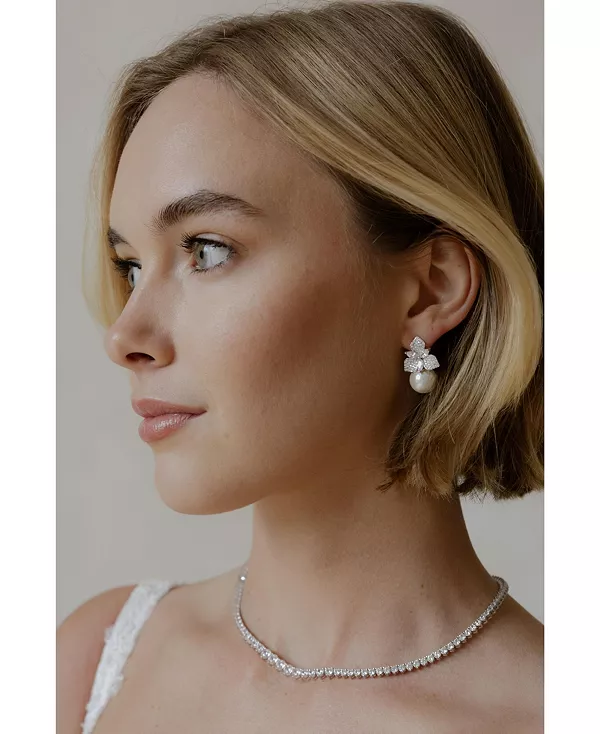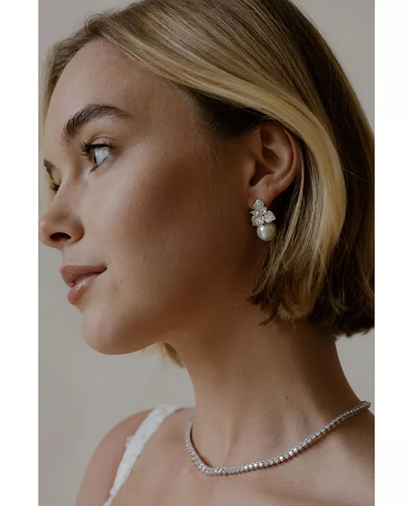Великолепный выбор для вашей свадьбы или любого особого случая. Эти серьги украшены цветком-гвоздиком, украшенным кристаллами, и изящной подвеской в виде жемчужины, излучающей элегантность и красоту.