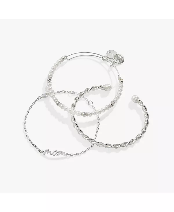 Набор из 3 браслетов с надписью «Мама» Alex And Ani, silver