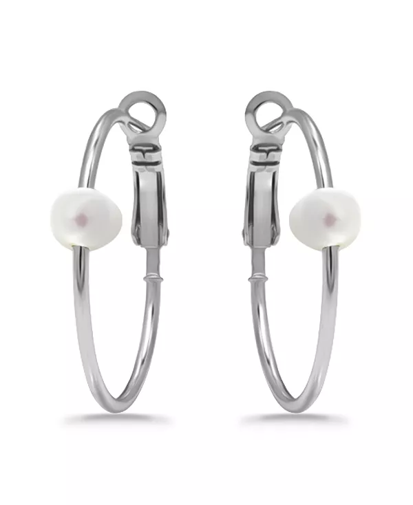 Серьги-Кольца с белым культивированным жемчугом Macy'S, silver