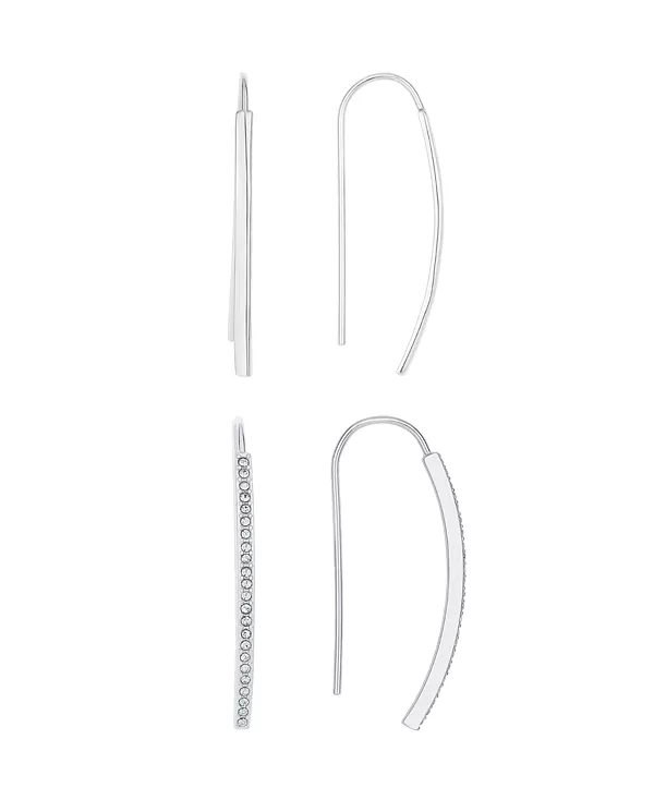 Комплект серег с изогнутой хрустальной планкой And Now This, silver