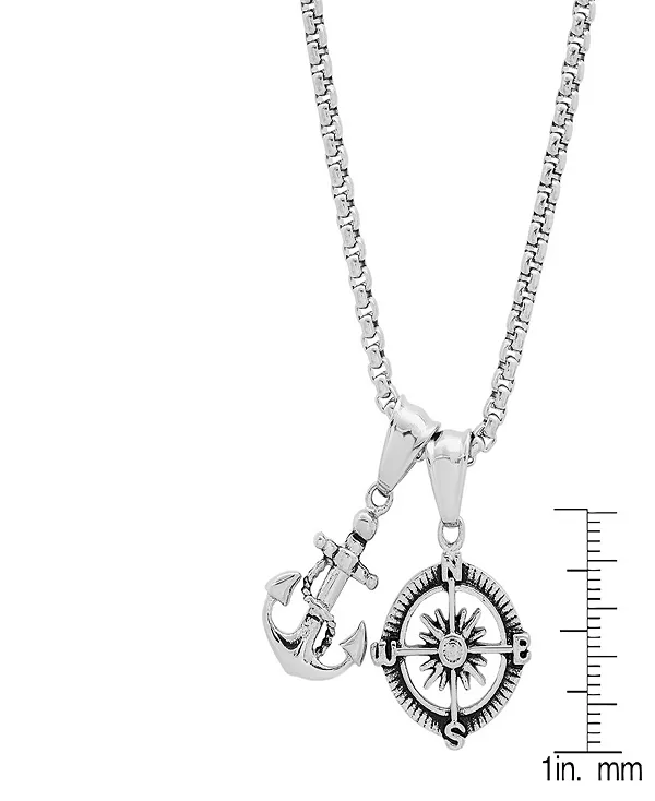 Мужское ожерелье с подвеской в виде якоря и компаса Steeltime, silver