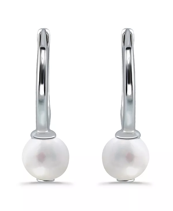 Серьги-Кольца с белым культивированным жемчугом Macy'S, silver