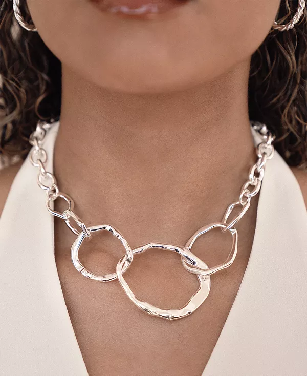 Наше переплетенное золотое колье-цепочка создано так, чтобы напоминать выплавленные вручную золотые круги.