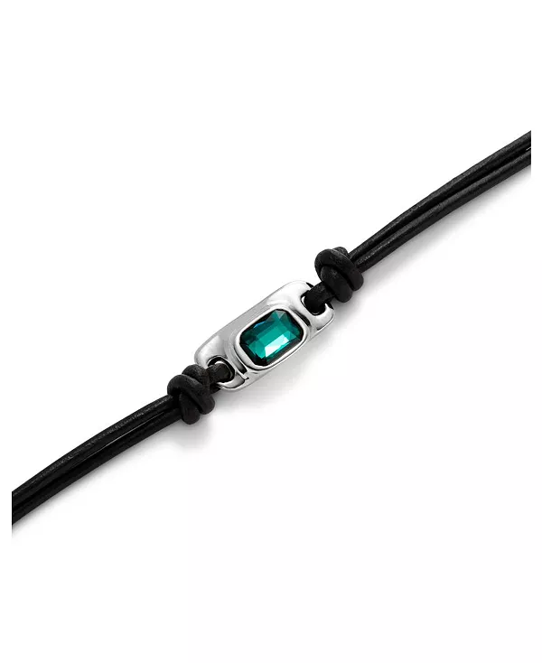 Кожаный браслет с зеленым кристаллом Unode50, silver