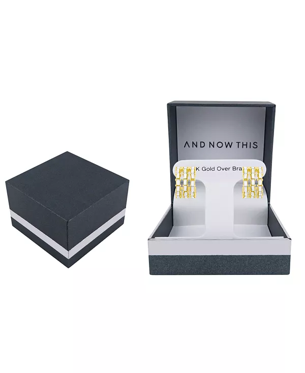 Серьги-Кольца в форме багета с тремя рядами And Now This, gold
