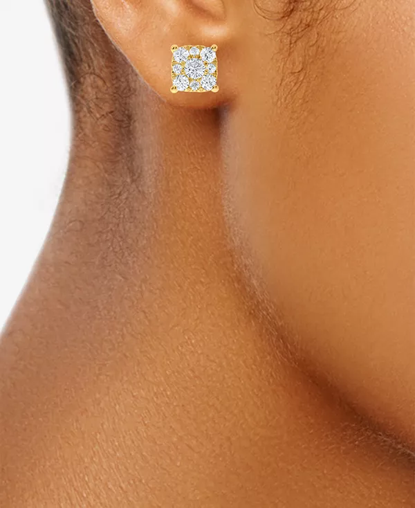Выберите изысканность и блеск с этими унисекс-серьгами-гвоздиками с квадратными гроздьями бриллиантов.