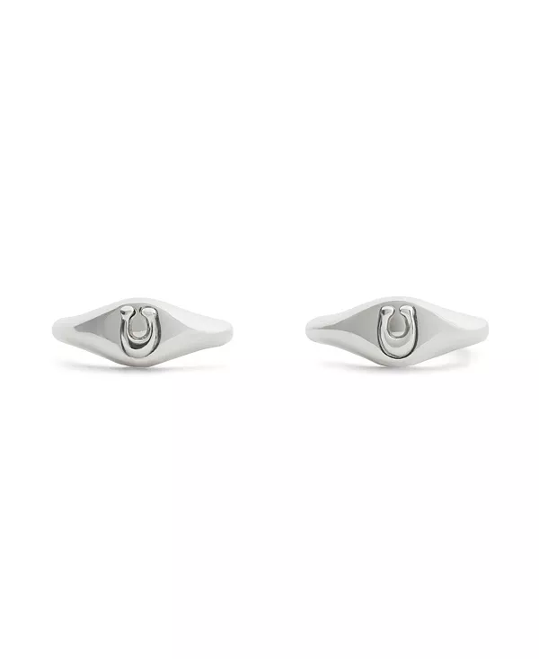 Фирменные серьги-печатки Huggie Coach, rhodium