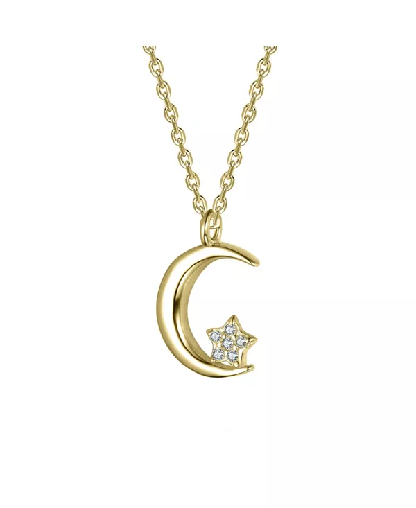 Подчеркните свой стиль этим ожерельем с подвеской в виде полумесяца и звезды, покрытым 14-каратным золотом. Изысканная цветная отделка кубических цирконий доступна в двух потрясающих вариантах: прозрачный кубический цирконий для непреходящего блеска и розовый кубический цирконий для игривой элегантности. Это ожерелье идеально подходит для любого образа и добавит небесного очарования.
