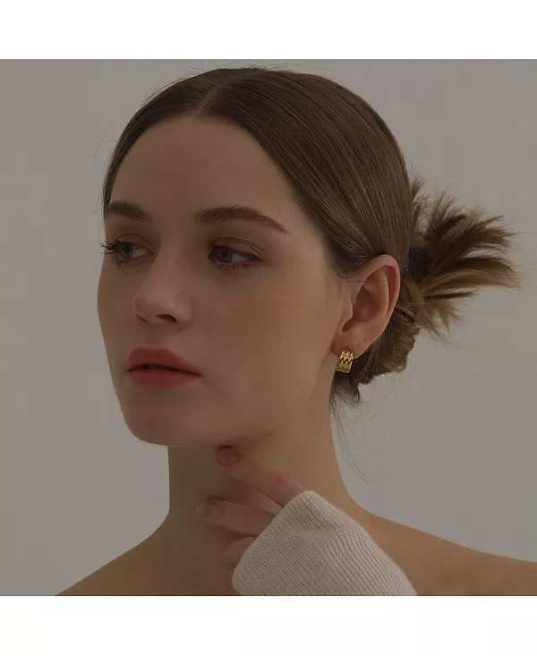 Добавьте в свой образ неподвластный времени блеск с серьгами-кольцами Cora Triple-Ridge. Изготовленные из нержавеющей стали с 18-каратным золотым покрытием, эти массивные мини-кольца легкие, гипоаллергенные и созданы для ношения в течение всего дня. Скульптурный тройной гребень придает смелую текстуру, оставаясь при этом непринужденно классическим. Полированная отделка добавляет сияющий блеск, что делает их идеальными для повседневной укладки или особых случаев. Водонепроницаемые, устойчивые к потускнению и созданные для движения вместе с вами — это ваши новые любимые золотые серьги-кольца.