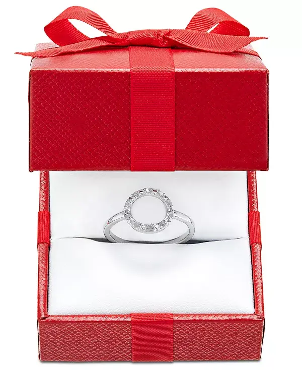 Вечная тайна круга воплощена в бриллиантах круглой огранки этого очаровательного кольца (1/10 карата). Доступно в стерлинговом серебре, стерлинговом серебре с покрытием из 14-каратного золота и стерлинговом серебре с покрытием из 14-каратного розового золота.