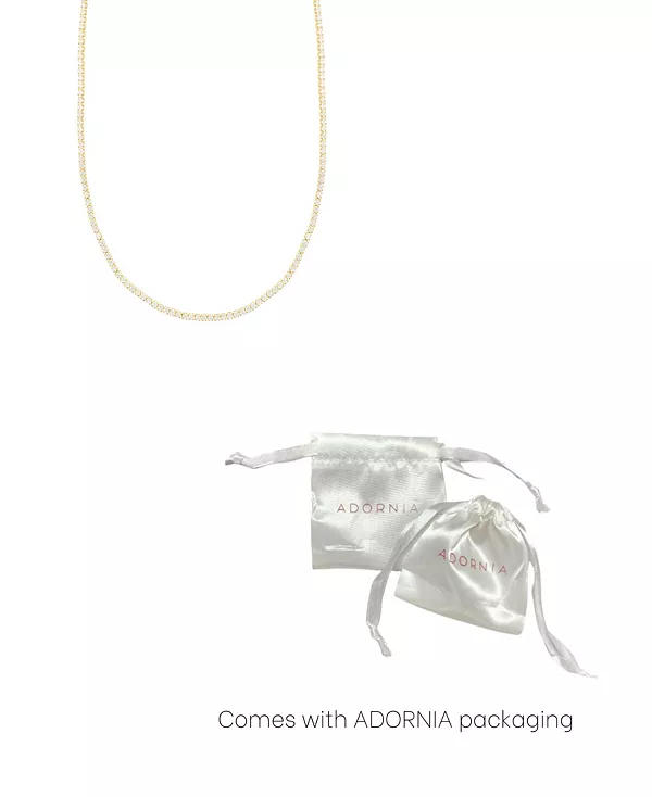 Это потрясающее ожерелье выполнено в классическом теннисном стиле, переосмысленном в микро-размере для современной интерпретации классического стиля. Блестящее покрытие из 14-каратного золота добавляет нотку роскоши и тепла, украшая любой ансамбль, как повседневный, так и вечерний, с непринужденной грацией. Это ожерелье идеально подходит как для повседневной носки, так и для особых случаев, излучая сдержанный гламур и непреходящее очарование. Независимо от того, носите ли вы его отдельно как шикарное украшение или в сочетании с другими ожерельями для создания индивидуального образа, микро-теннисное ожерелье ADORNIA обязательно станет заветным фаворитом в вашей коллекции украшений.