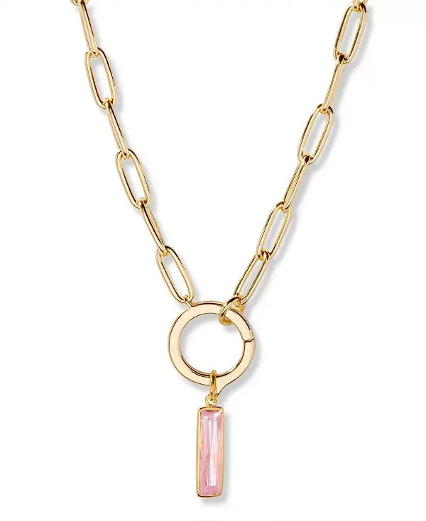 Удлиненное ожерелье Colette Birthstone Elongated из 14-каратного золота с подвеской в виде камня рождения, выполненной из латуни, украшено стильным звеном-скрепкой и украшено подвеской-подвеской с подвеской-подвеской. Ожерелье оснащено надежной застежкой-шармом. Это ожерелье идеально подойдет для любого случая, добавив элегантности и индивидуальности любому наряду.