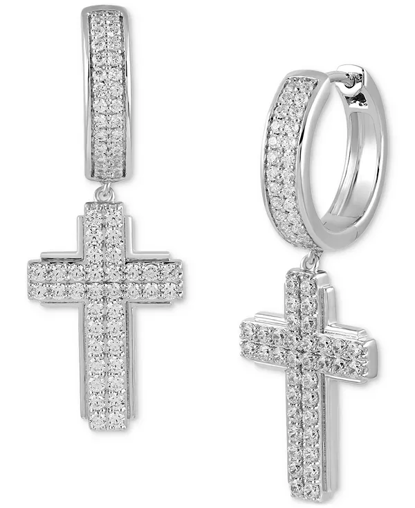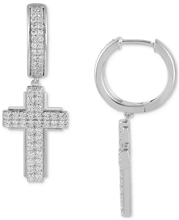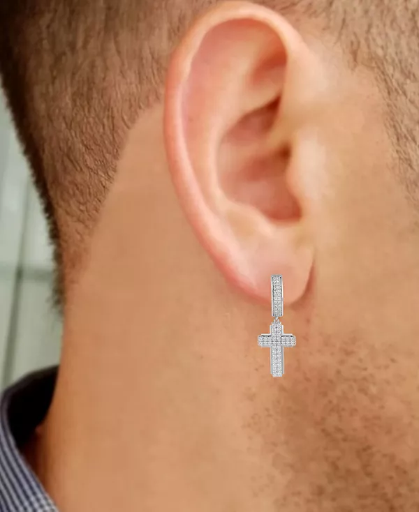 Мужские серьги-кольца с бриллиантами в форме креста (1 карат) Macy'S, silver