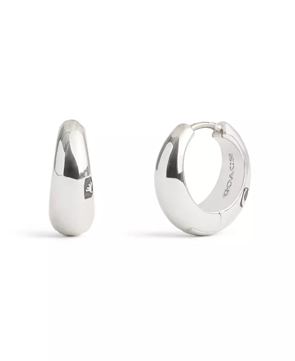 Фирменные трубчатые серьги-гвоздики Coach, rhodium